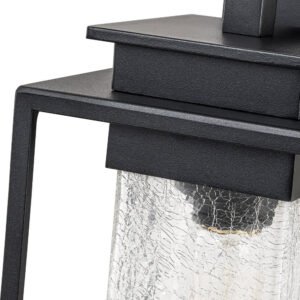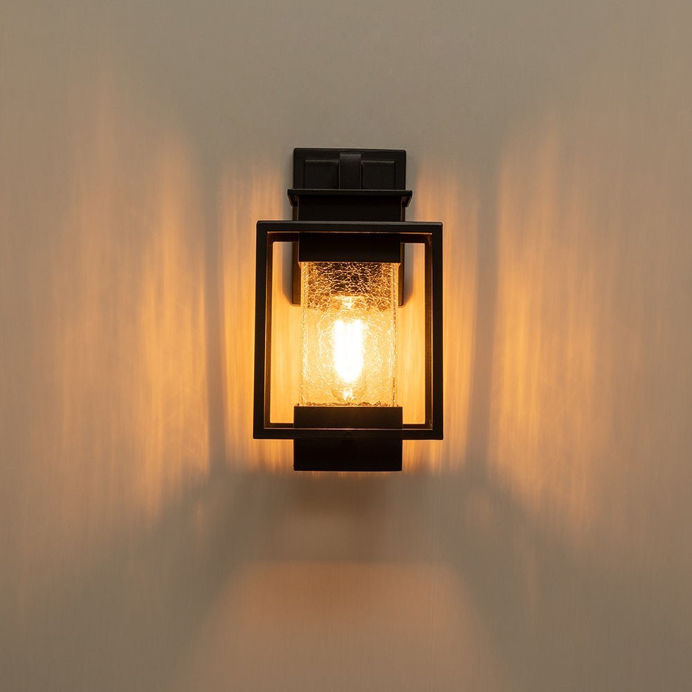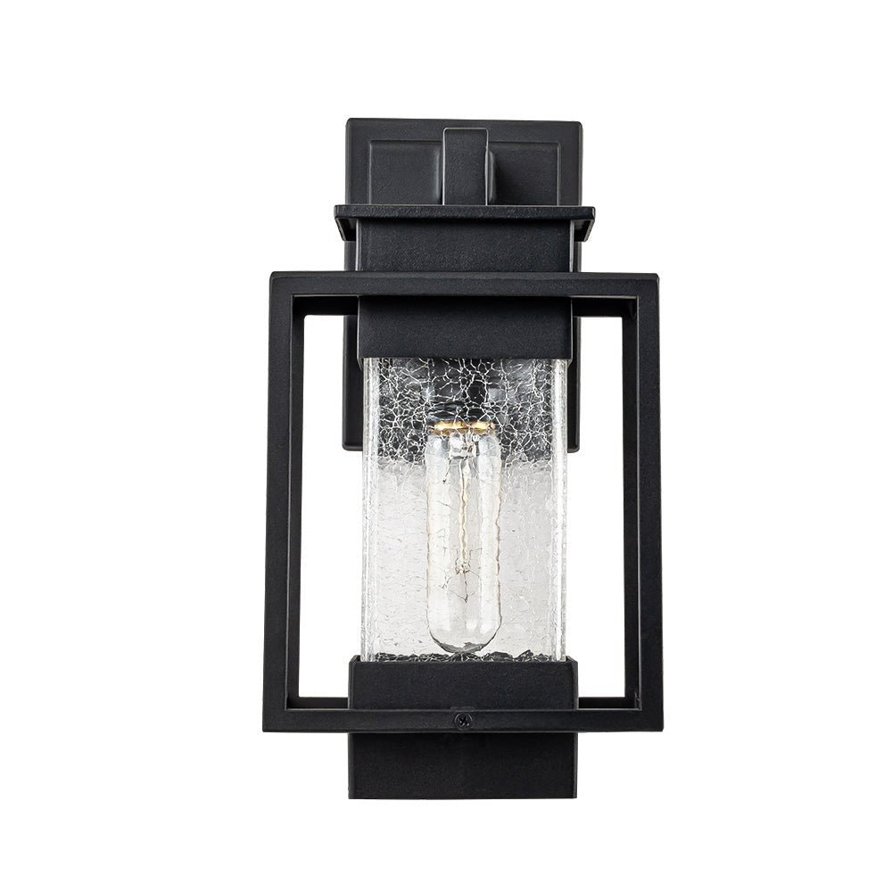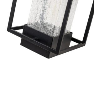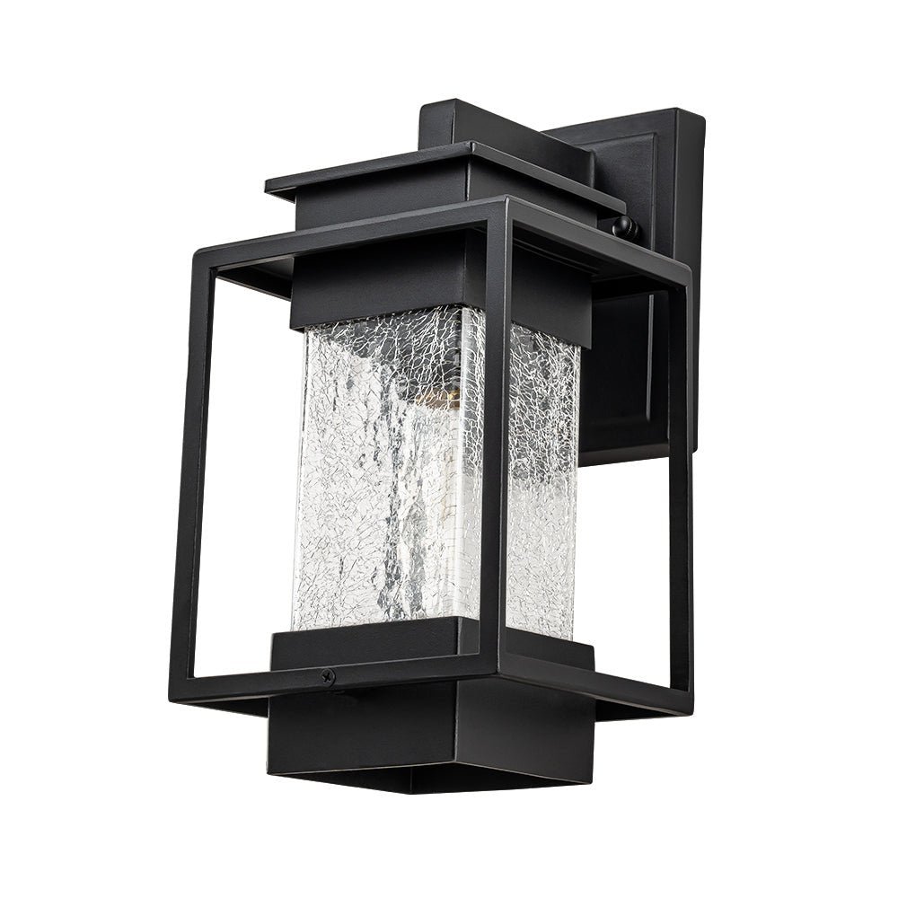 Elevate the allure of your home with our 1-light satin black rectangular glass outdoor wall light fixture. Crafted from high-quality aluminum, it withstands various weather conditions while adding a touch of elegance and mystery to your space. Featuring a classic linear frame and fashionable cracked glass design, it seamlessly blends traditional industrial and modern styles. Ideal for garages, farmhouses, streets, patios, balconies, hallways, doorways, and entryways.