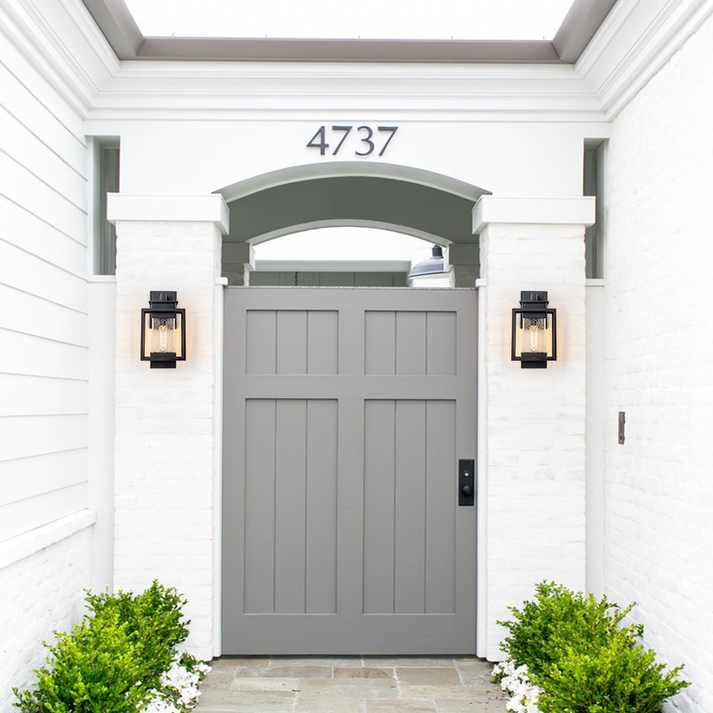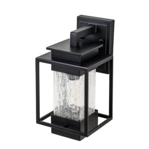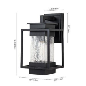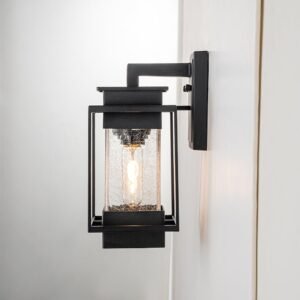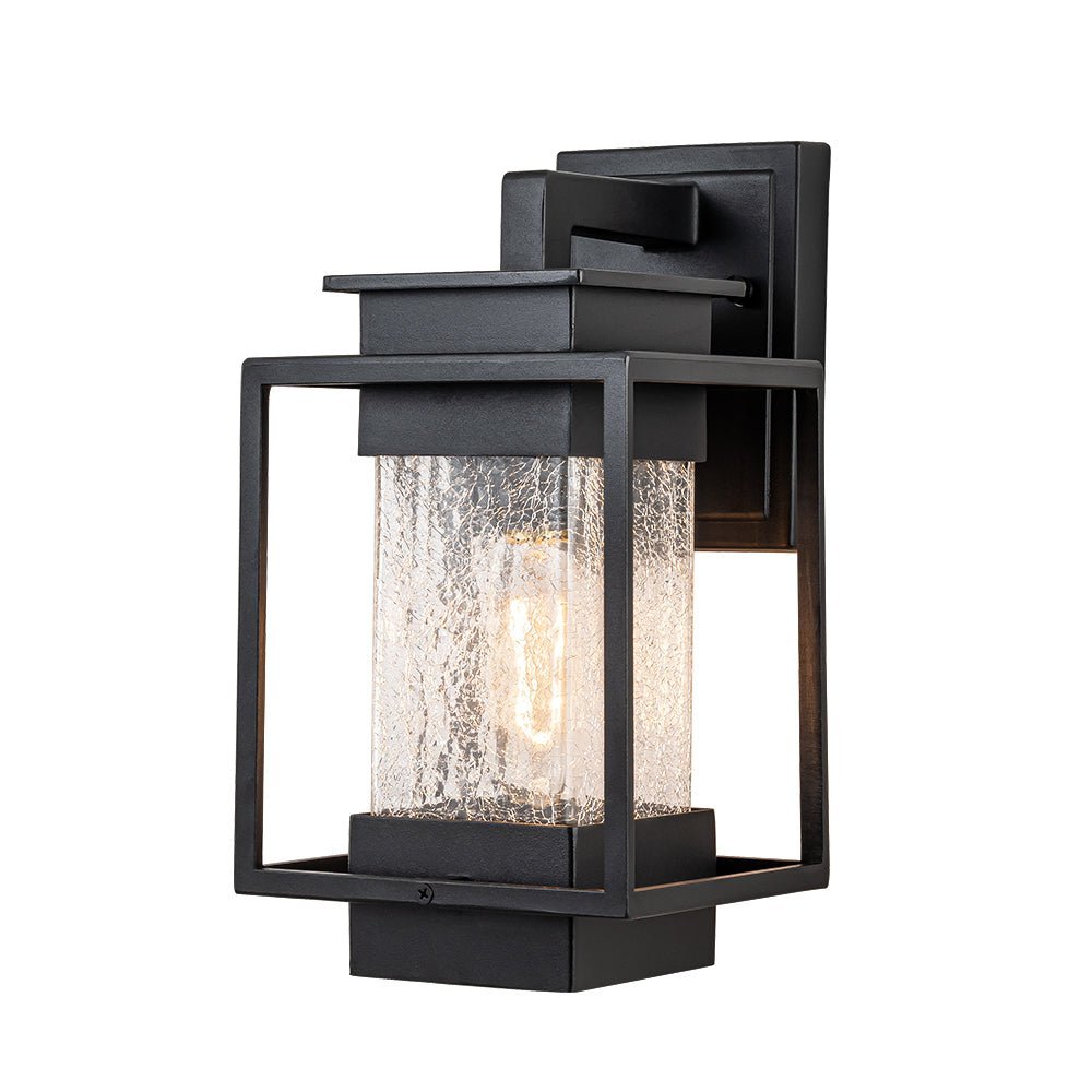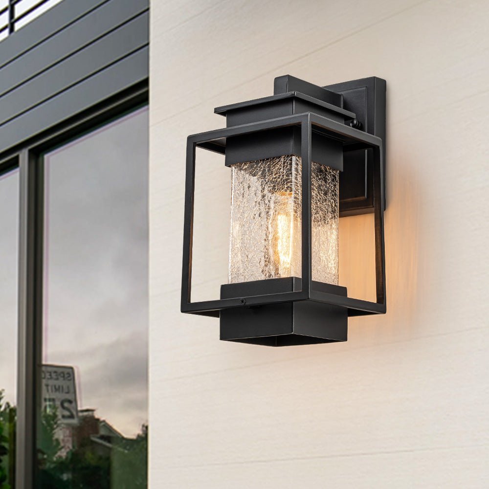 Elevate the allure of your home with our 1-light satin black rectangular glass outdoor wall light fixture. Crafted from high-quality aluminum, it withstands various weather conditions while adding a touch of elegance and mystery to your space. Featuring a classic linear frame and fashionable cracked glass design, it seamlessly blends traditional industrial and modern styles. Ideal for garages, farmhouses, streets, patios, balconies, hallways, doorways, and entryways.