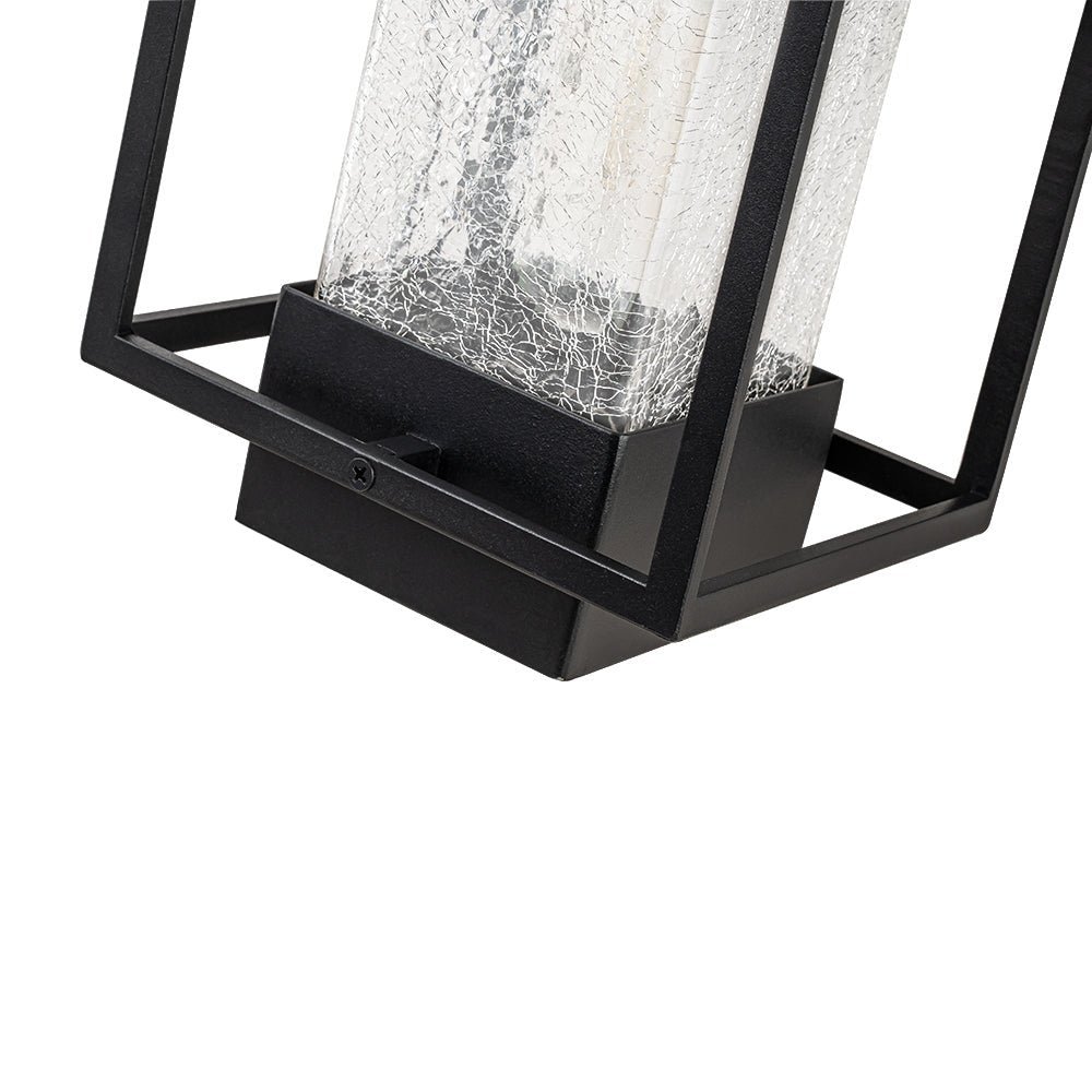 Modern • Lantern • Wall Sconce • Satin Black Finish • Cracked Glass • Linear Frame • IP23 Waterproof Rating